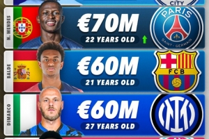 体育资讯6月13日讯 2024-25赛季结束,Score 90更新了左后卫身价排行,曼城后卫格瓦迪奥尔7500万欧第一,巴黎圣日耳曼的努诺-门德斯7000万欧第二。
