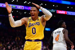 2021年8月,湖人送出波普、库兹马、哈雷尔和首轮22号秀以赛亚-杰克逊的签约权,从奇才换来威少和两个次轮签(2024年、2028年),这是一笔多队大交易。
