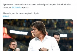 罗马诺透露,尽管与意大利俱乐部有联系,但阿尔梅达已经与塞维利亚就执教事宜达成协议,同意出任球队新帅,即将签署为期2年的合同。