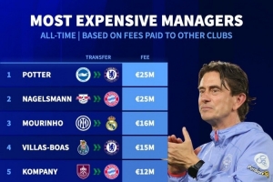 体育资讯6月13日讯 德国转会市场列出了教练“转会费”排名,波特、纳格尔斯曼2500万欧居首,穆里尼奥1600万欧第三。