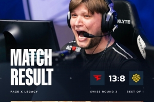 易边再战,FaZe拿下手枪局后次回合s1mple加利尔双杀开路,鸡哥吹风机三杀收割,Legacy节节败退连送3分,大表哥救护车开始鸣笛。FaZe一路将比分扩大至11-6。第18局,又是s1mple大狙拿到首杀,FaZe拿到赛点。尽管Legacy连扳三分,但第21局鸡哥与s1mple联手收割残局,FaZe13-8战胜Legacy。