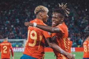 体育资讯6月14日讯 巴萨边锋亚马尔更新了社媒,晒出了一张与尼科在国家队比赛中的庆祝照片。