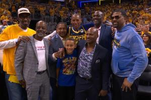 比赛第四节期间,场边的步行者名宿们来了一张大合照,当时他们满脸笑容,但最终主队遭遇末节逆转……