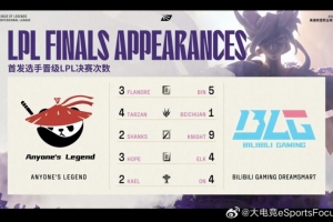 体育资讯6月14日讯 LPL第二赛段决赛BLGvsAL,官方发布了两队选手的决赛次数对比;