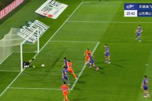 比赛第26分钟,泰山左路传中,卡扎伊什维利近距离头球攻门被闫炳良神奇扑出。起身后闫炳良对队友非常不满,示意队友没有盯住人。