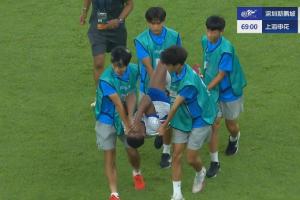 体育资讯06月14日讯 申花vs深圳比赛第69分钟,米内罗受伤被担架抬下,刘诚宇临危受命替补登场!