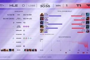 体育资讯6月15日讯 LCK MSI资格赛HLE首局不敌T1,首局Peanut连续送头断节奏,全局仅打出5.3k的伤害。