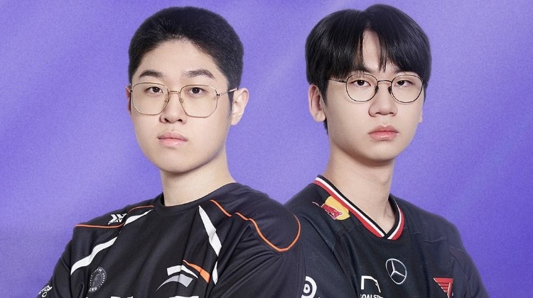 红色方T1:Doran安蓓萨、Oner潘森、Faker瑞兹、Gumayusi韦鲁斯、Keria波比