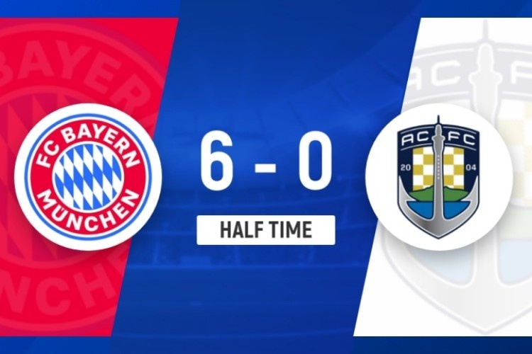 上半场比赛结束,拜仁慕尼黑暂时6-0领先奥克兰城。