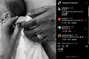 本-怀特妻子社媒写道:“2025.6.5,我们的宝贝儿子,我们非常爱你🤍”阿森纳官方社媒也在评论区为夫妇二人送上祝福。