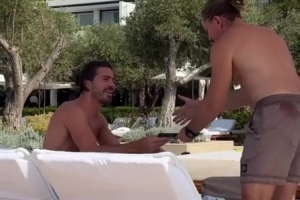 格拉利什近日疑似在希腊度假时被套路替陌生人买单,这位失宠的曼城球星结束漫长赛季后,正在希腊米克诺斯岛的豪华度假村享受假期。瑞典网红帕特里克-佩尔森在TikTok和Instagram发布的视频显示,他让这位英格兰国脚签名的账单实则是泳池餐厅的消费单。
