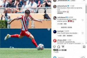 阿尔瓦雷斯社媒晒出比赛照片,并写道:“惨痛的失利,但还没有结束,加油马竞!”