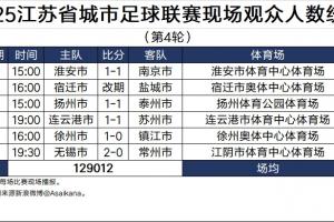 体育资讯06月16日讯 根据朱艺统计,“苏超”第4轮观众人数再创新高,5场比赛(不含一场6月21日比赛)全部超过2万人,徐州奥体超3万,场均人数达25802人。