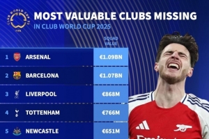 缺席世俱杯球队身价榜: