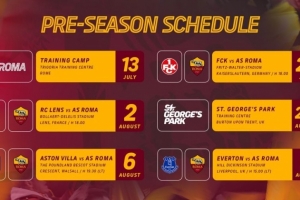随后,罗马将前往英格兰,于8月2日至8日在伯顿特伦特河畔的圣乔治公园进行集训。在这段训练期间,已安排一场对阵维拉的热身赛,比赛定于8月6日在沃尔索尔的贝斯科特球场举行。