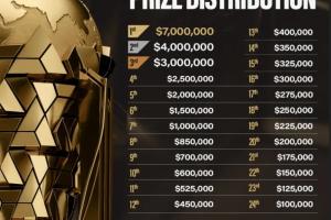 体育资讯6月17日讯 今日EWC官推发布了2025 EWC队伍最终总项目积分排名的奖金分配规则,总奖池为2700万美元,具体名次分配情况如下: