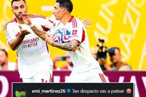 赛后迪马利亚晒照并配文🫶⚽️🦅,他的阿根廷国家队队友大马丁评论:你踢得也太慢了😂。