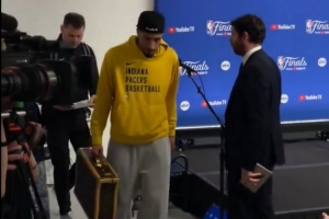 赛后,哈利伯顿在接受采访时称他将出战NBA总决赛第六场,并表示自己一生都在等待这一刻。随后他有点一瘸一拐地离开了发布会现场。