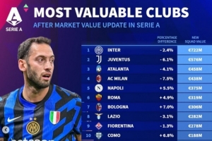 体育资讯6月17日讯 意甲球员德转身价更新,德转列出了意甲球队总身价排行,国米居首,尤文、亚特兰大排在二三位。