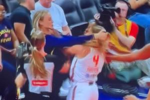 此前的冲突主角太阳球员谢尔登快攻上篮被狂热球员索菲-康宁汉姆强硬犯规拽倒在地,双方再次爆发激烈冲突。