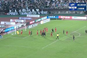 海港vs浙江补时第1分钟,弗兰克在角球进攻中头球破门。随后VAR判定陶强龙犯规在先,进球取消,浙江仍1-2落后海港。