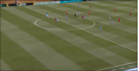 比赛第32分钟,维达德中场直传,曼城后卫雷斯解围失误送给洛奇单刀机会,后者扣一下分给迈卢拉,打门被埃德森神勇扑出!场上比分曼城1-0维达德。