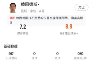 体育资讯6月19日讯 世俱杯小组赛首轮曼城2-0击败维达德,曼城新援赖因德斯此役首发出战打满全场,球员本场数据如下: