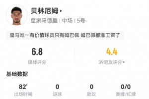 体育资讯6月19日讯 新世俱杯首轮,皇马暂1-1新月。此役贝林厄姆首发82分钟被换下,球员全场重点数据如下↓
