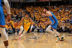 Chris Herring:步行者发起进攻的耗时长短。雷霆G5对禁区的窒息式防守,加上哈利伯顿移动受限与麦康纳缺乏外线牵制力(即便他第三节大爆发),导致步行者进攻长期陷入泥沼,这完全背离了球队的进攻哲学。主场优势或许能缓解问题,但若无法通过快攻减轻哈利伯顿的压力,雷霆很可能在当晚捧起奖杯。