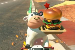和其他车手一样,牛牛也能在赛道上获得并使用道具,但其中一个道具“汉堡”引发了玩家和媒体的议论:作为一只牛来说,吃牛肉汉堡多少有些“地狱”了。不过,包括媒体、称汉堡肉荤素是任天堂最高机密的制作人都对此事一笑了之,但有一个组织,一个一直整活恶心玩家厂商的组织却对此颇为关注。