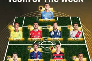 体育资讯6月20日讯 世俱杯首轮已经结束了全部的争夺,主办方评选出了本周最佳阵,穆西亚拉、维蒂尼亚入选,拉莫斯、奥塔门迪两名老将在列。