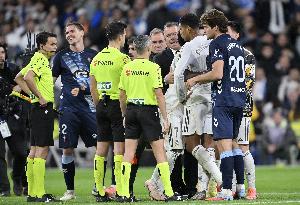 “裁判周遭满是敌意,皇马官方电视台的口诛笔伐、俱乐部管理层的施压、球迷的指责谩骂,都在将裁判吞噬。更雪上加霜的是,球员们非但不施以援手,反而如秃鹫般对裁判群起而攻之,唉,裁判实在太可怜了。”