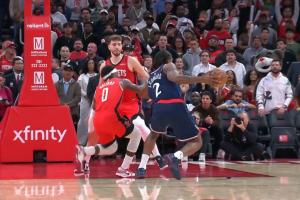 危险动作!奥萨尔扑防狄龙没收脚 被吹罚一级恶意犯规