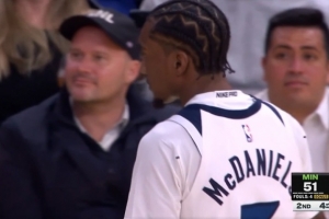 很拼!大瓦格纳下巴被小贾伦肘出血 场边止血后继续杀伤罚球