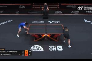 张本智和1/4决赛4-3击败费利克斯·勒布伦后庆祝↓
