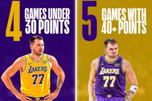 本赛季至今,他砍下40+得分的场次比低于30分的场次还要多。
