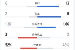 这就是足球!米兰3-1科莫数据:射门7-18,射正4-8,米兰控球32%