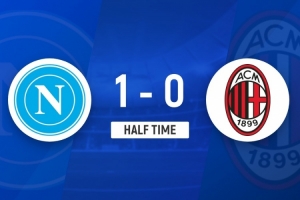 体育资讯12月19日讯 意大利超级杯半决赛,那不勒斯对阵AC米兰,比赛在沙特国王大学体育场进行。上半场,奇克、萨勒马科尔斯造险,埃尔马斯、恩昆库失良机,内雷斯破门。半场战罢,米兰0-1那不勒斯。