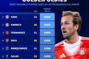 1.哈里·凯恩(拜仁),32岁,6500万