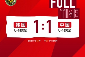 2025亚足联U15男子足球锦标赛第二轮,中国队1比1韩国队,吴比乐制造点球,潘朝伟破门得分。
