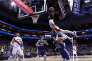 詹姆斯快攻合球撞倒米勒 裁判吹罚防守犯规 黄蜂教练挑战失败
