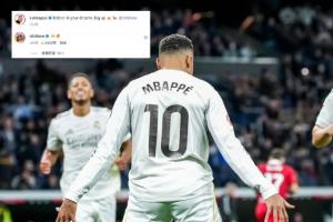 姆巴佩写道:“相信你的梦想。致敬王者👑🐐”,C罗则回复了“🙌🔥”两个表情,这则回复在5分钟内得到了超过5000次点赞。