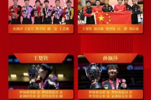 4站WTT大满贯:16冠(单打6冠,双打10冠)