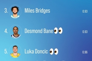 体育资讯12月22日讯 数据专家Kirk Goldsberry晒出了本赛季至今平均每次跳投得分最少的球员倒数前五榜单,具体如下: