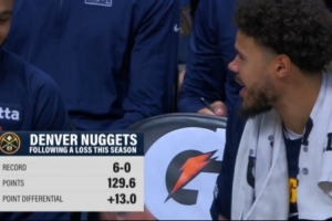 今日掘金135-112大胜爵士。至此,本赛季掘金在输球后的第二场比赛中战绩为6胜0负,场均轰下129.6分,场均净胜13分。