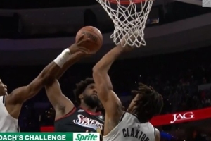 复出状态很不错!上半场最后一攻 格兰特篮下1打4突破上篮命中