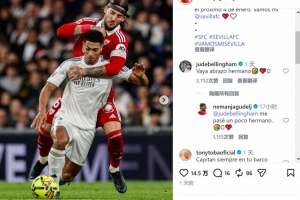 塞维利亚后卫古德利社媒晒出防守贝林厄姆的照片,配文:“我们在一个向来艰难的客场奋力拼搏,展现了真正的实力,尽管发挥出色却未能带走积分,这让我们感到苦涩,但我们坚信球队正走在正确的成长道路上。1月4日对阵莱万特的比赛,我们将全力以赴。加油,我的塞维利亚!”