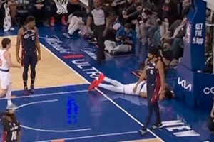 GIF-唐斯突破上篮被犯规,重重摔倒在地上