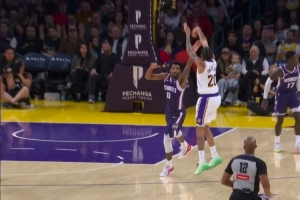 波杰姆抢板空中坐到OG身上 下落踢到后者鼻子 回看后未升级