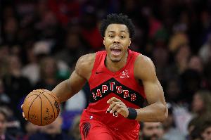 2米03的猛龙新星斯科蒂·巴恩斯本场比赛出任中锋,满场积极上下翻飞,抢爆勇士内线,篮板创生涯新高。全场比赛他出战42分钟26秒,17投11中,三分1中0,罚球1中1,爆砍23分25篮板10助攻的大号三双,还有3抢断1盖帽进账。